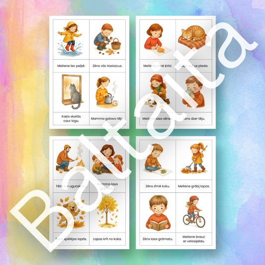 Lasīšanas kartītes - īsi teikumi, rudens
