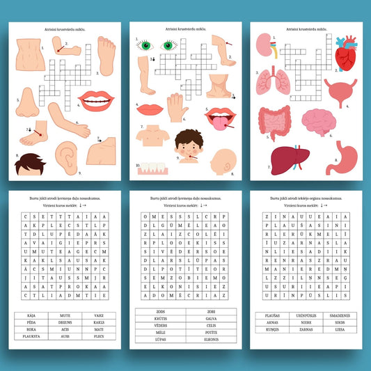 Darba lapas: Ķermeņa daļas un iekšējie orgāni