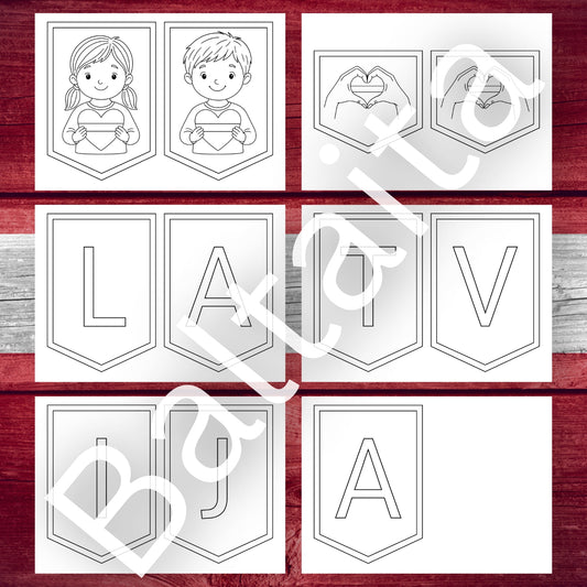 "Latvija" un "Daudz laimes, Latvija!" - krāsojamie karodziņi