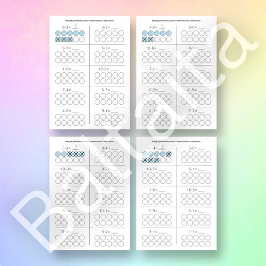 Matemātikas darba lapas - saskaitīšana un atņemšana 10 apjomā