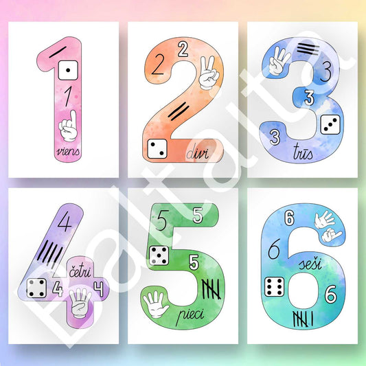 Ciparu plakāti - ūdenskrāsu, ar skaitļiem