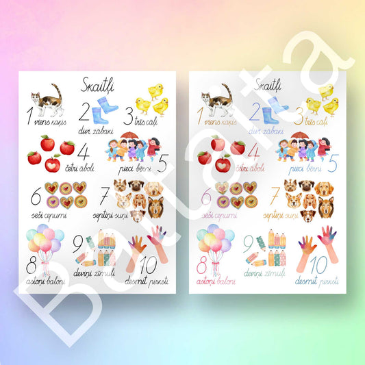 Ciparu plakāti - ūdenskrāsu, ar skaitļiem
