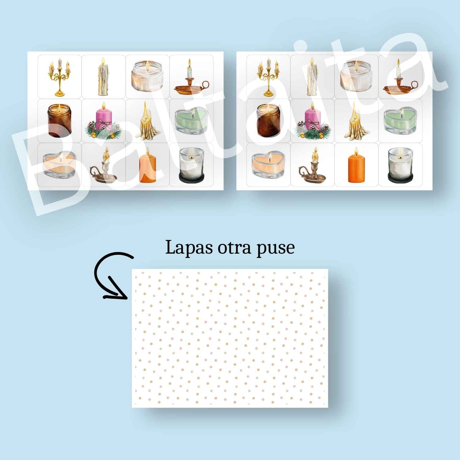 Materiālā iekļautas divas lapas ar kartītēm, kā arī raksts ko var drukāt uz kartīšu otras puses.