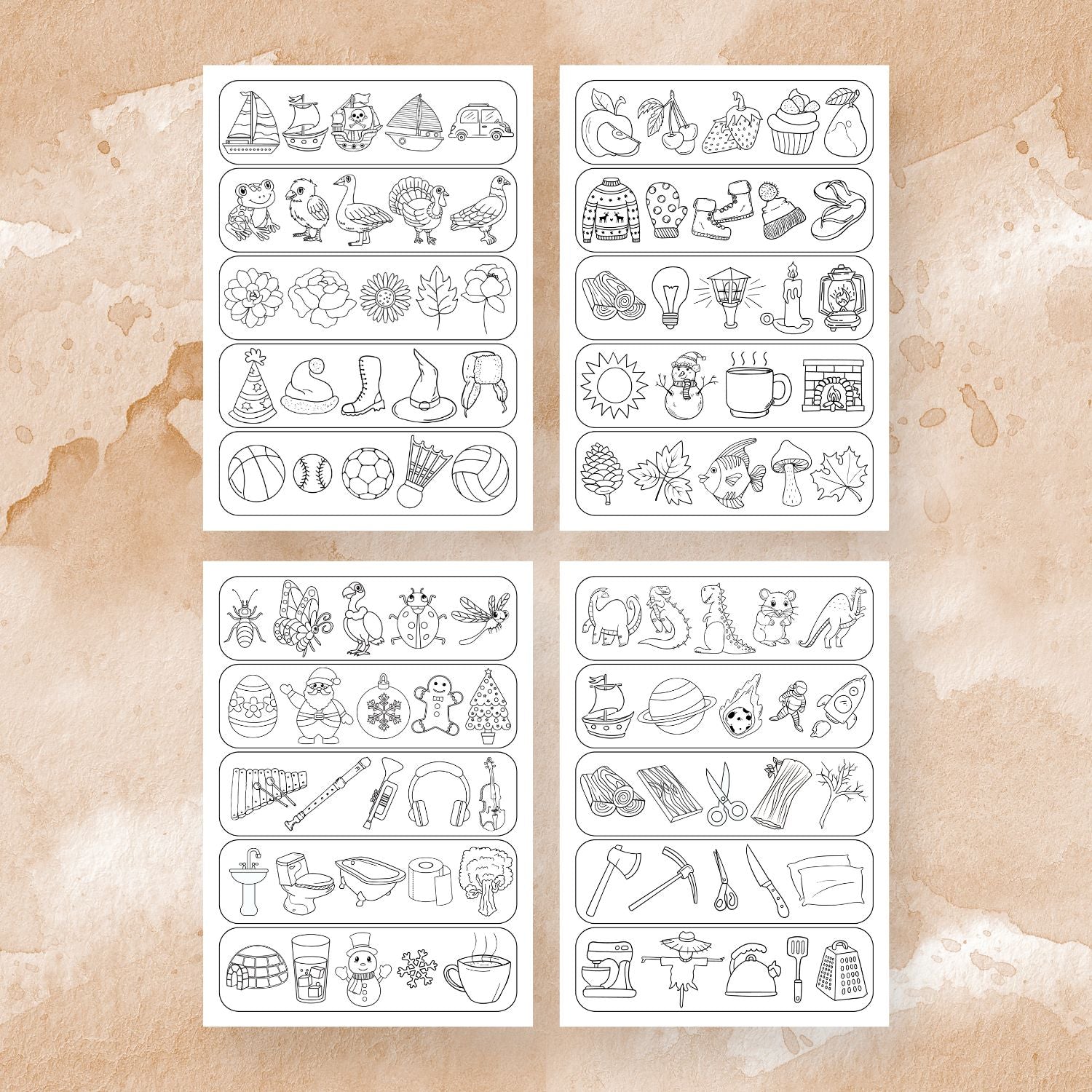 Kartītes var izmantot arī kā krāsošanas uzdevumu, gan pirms, gan pēc liekā atrašanas.