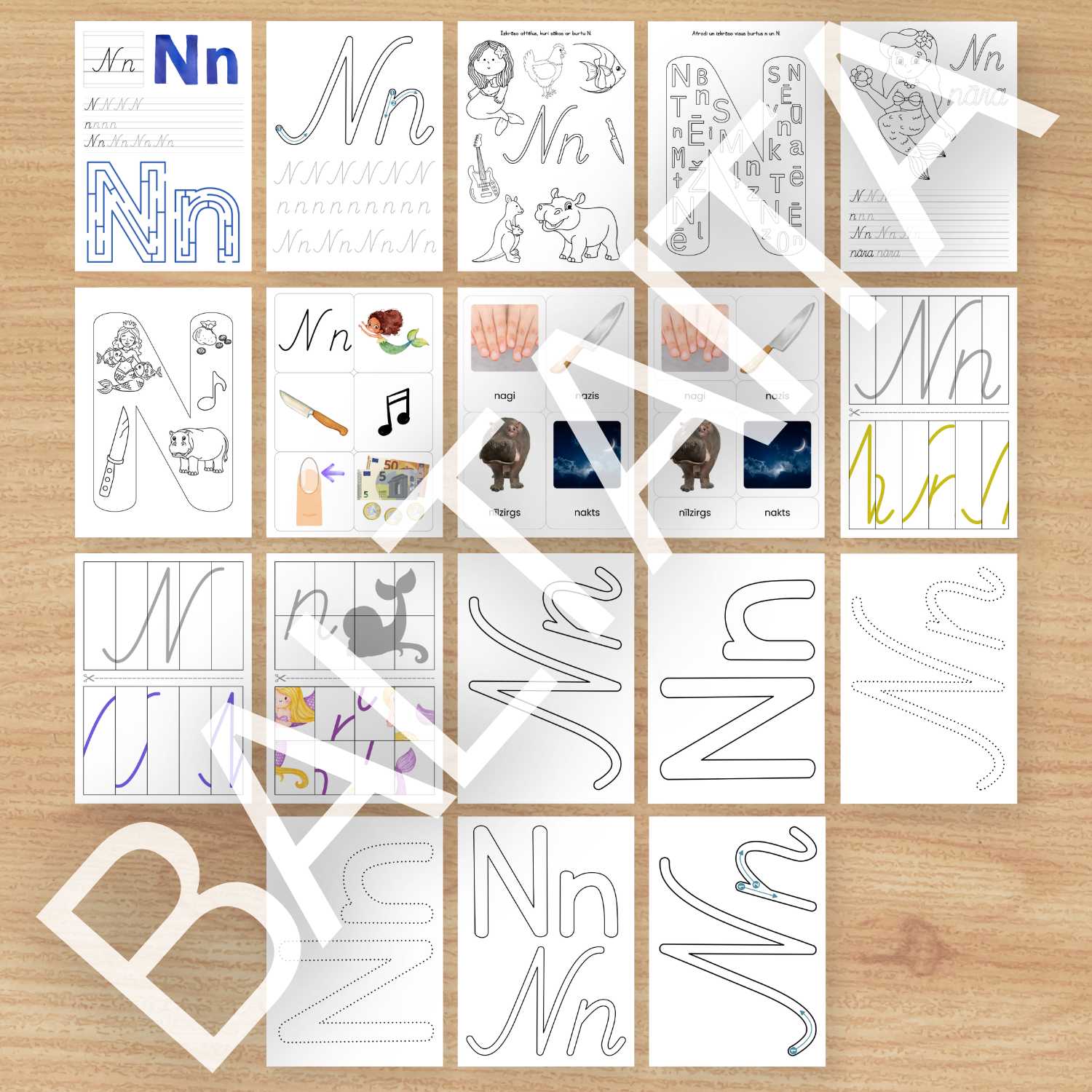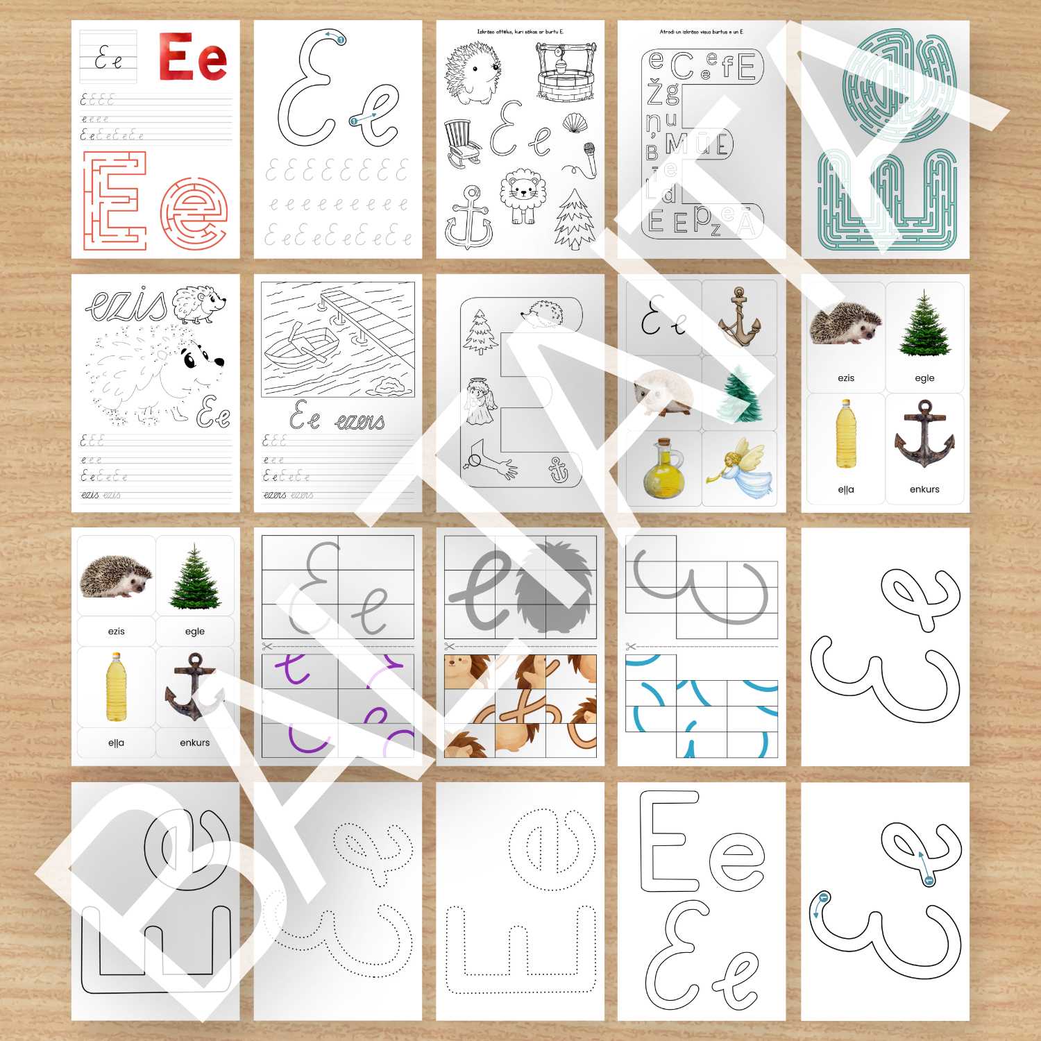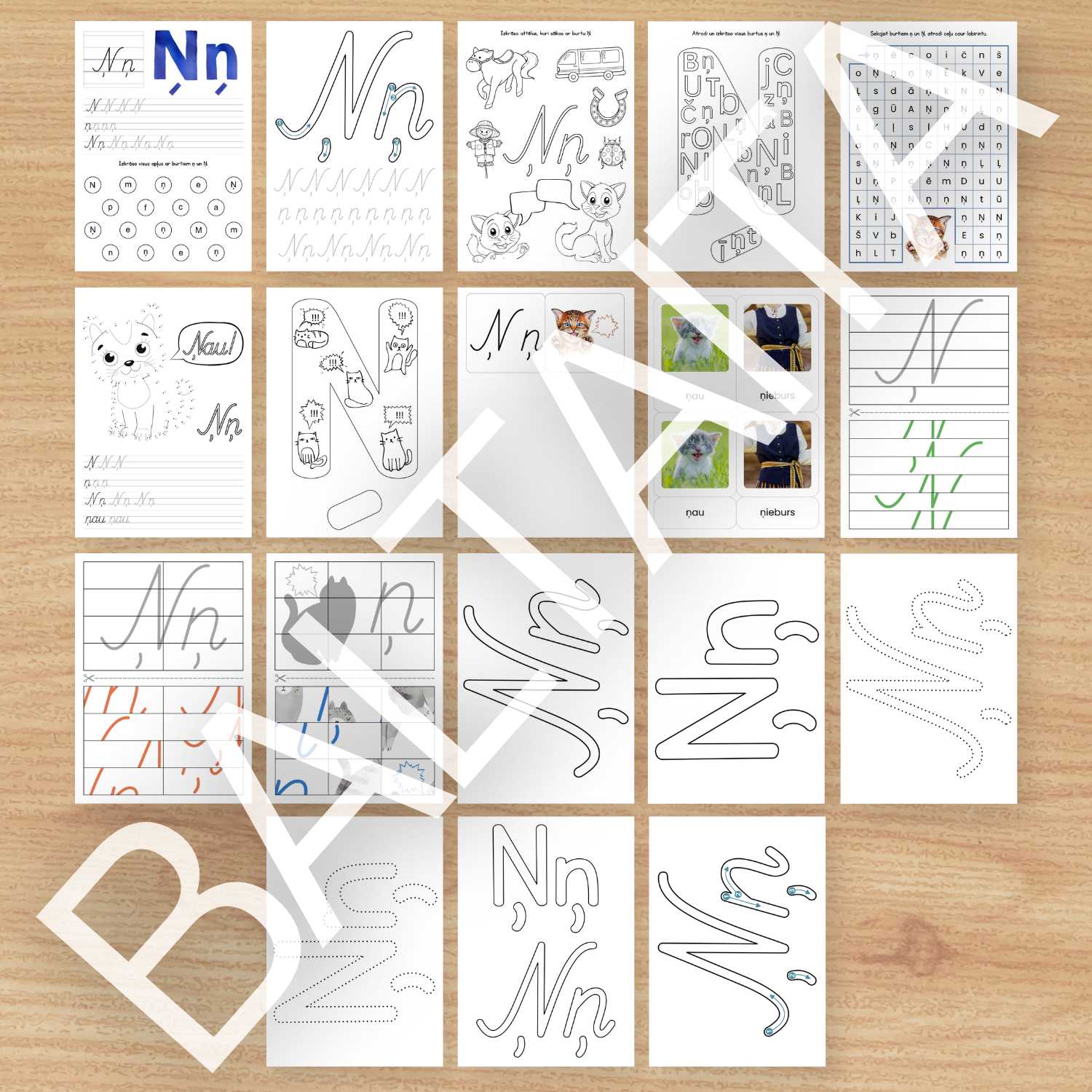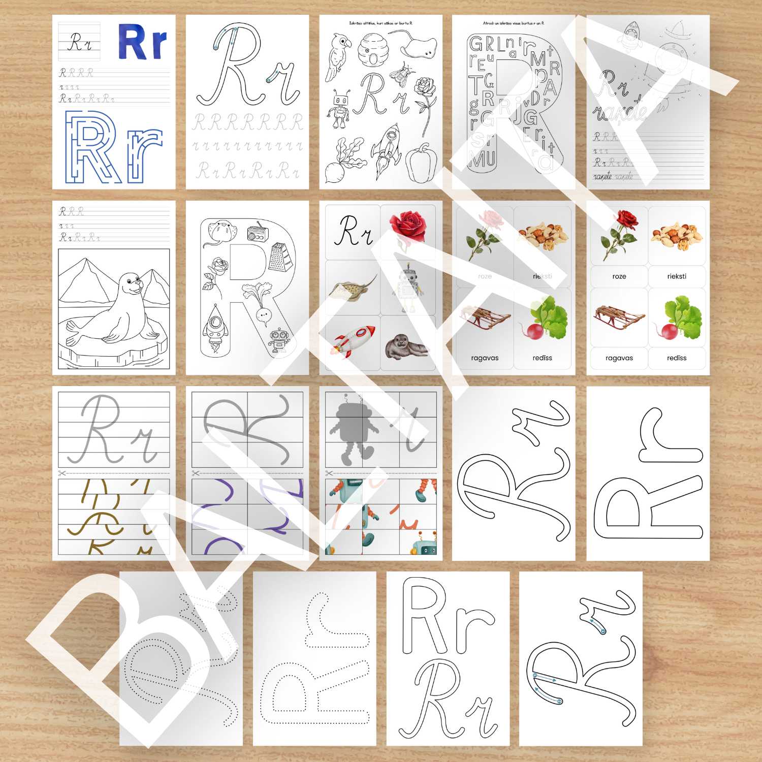 Darba lapas ar dažādiem uzdevumiem rakstīšanai, krāsošanai, burtu un attēlu puzlēm, kartītēm un citiem uzdevumiem.