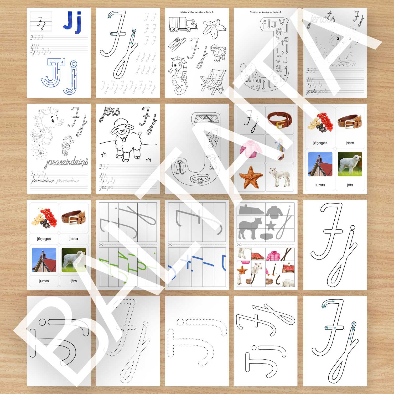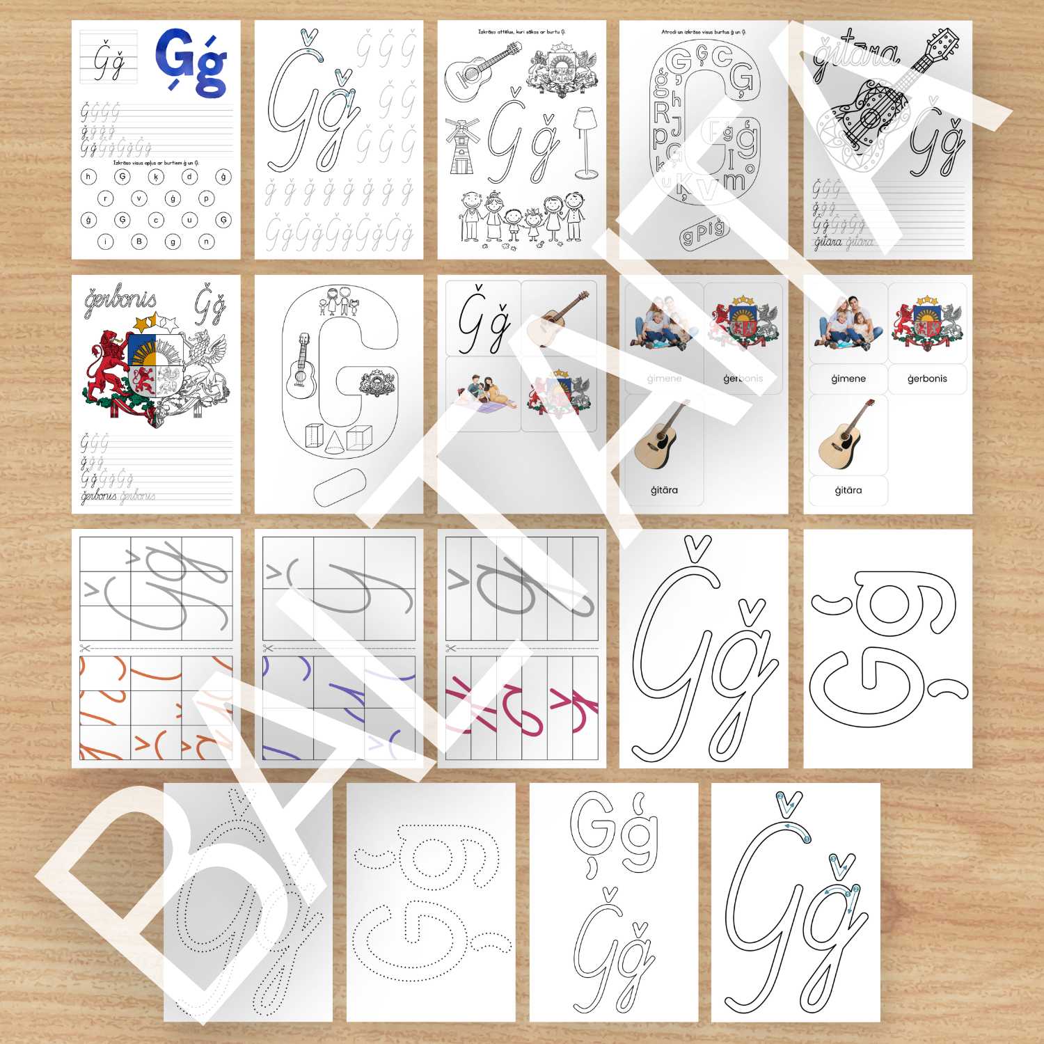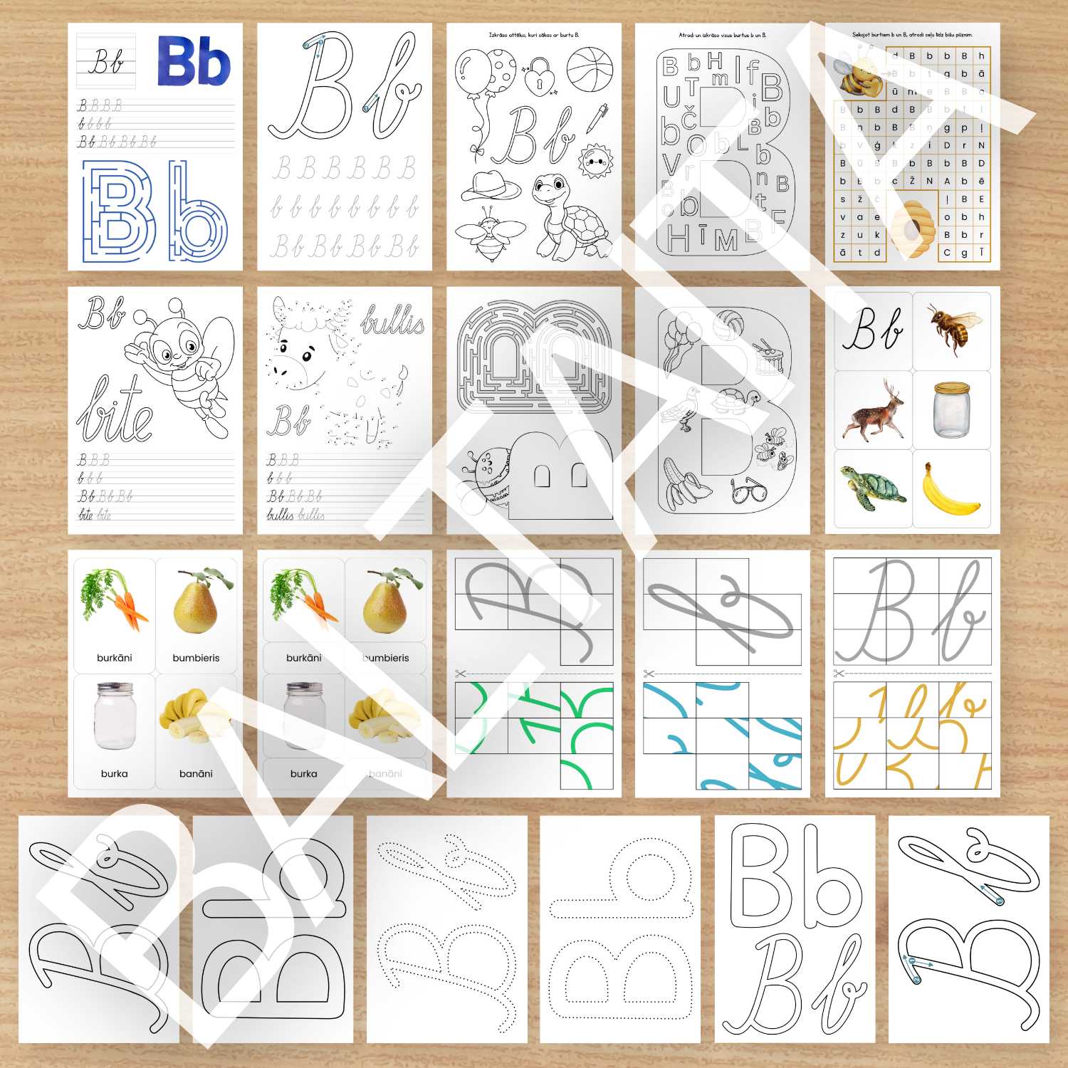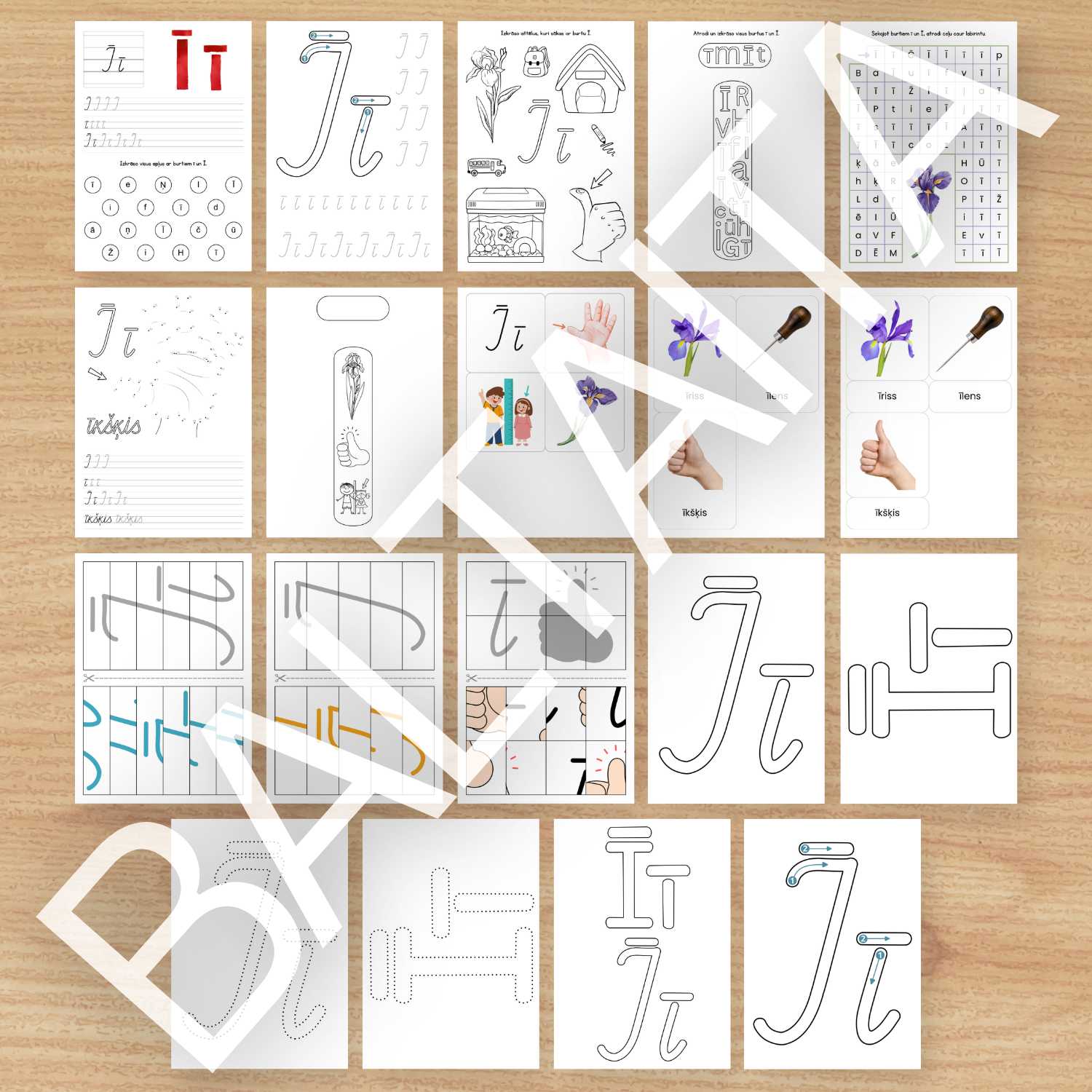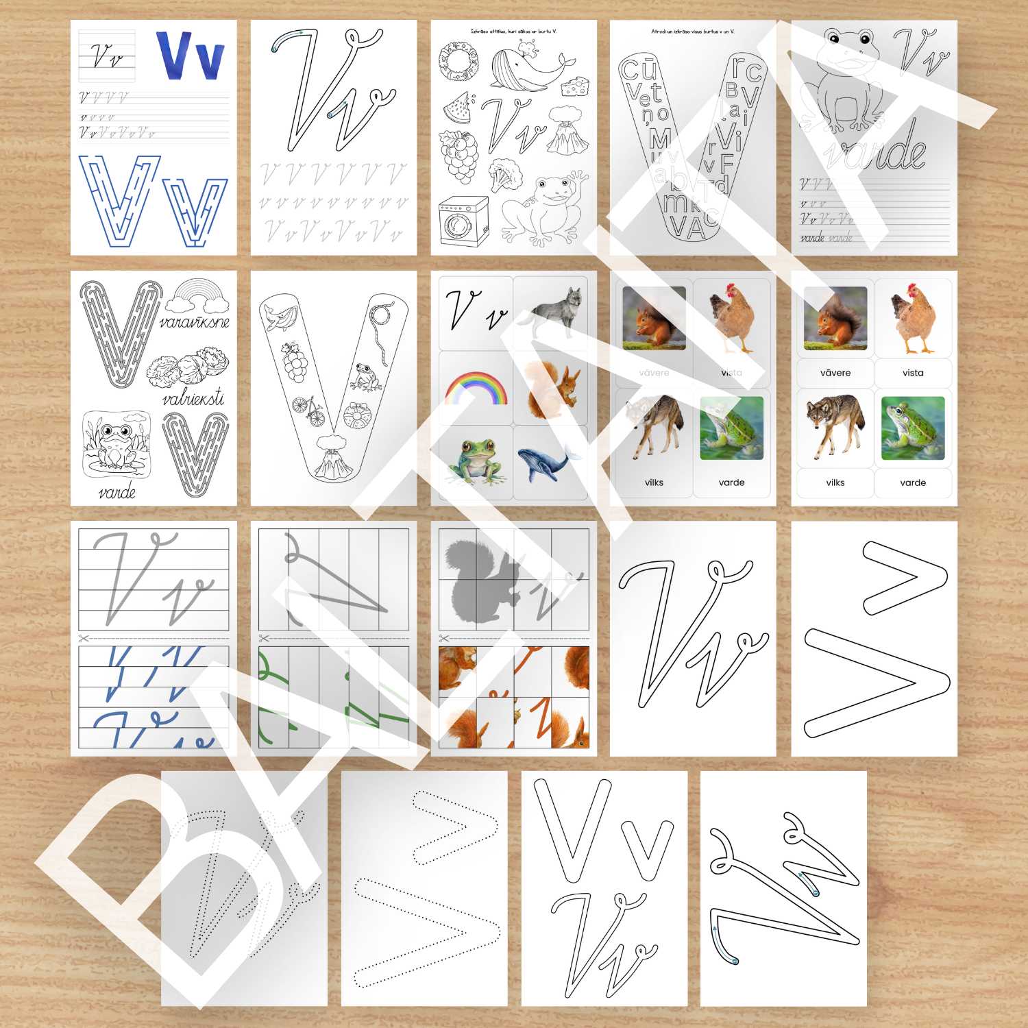 Versija "Visi alfabēta burti" sastāv no darba lapām katram alfabēta burtam - kopā 636 lpp., PDF formātā. Darba lapas iespējams lejuplādēt gan par katru burtu atsevišķi, gan visas kopā kā .zip failu.