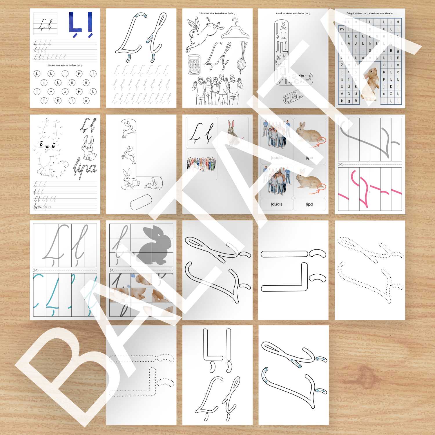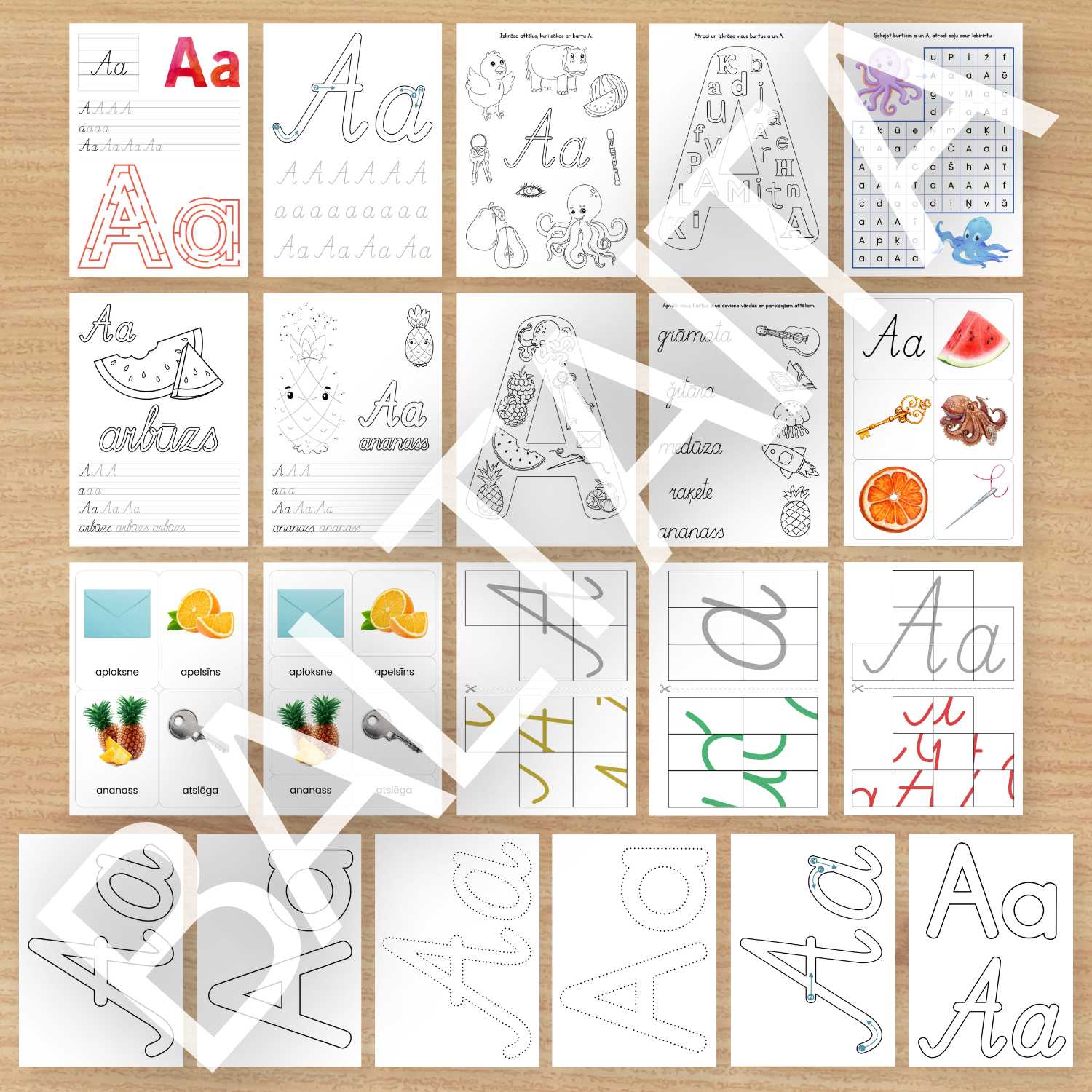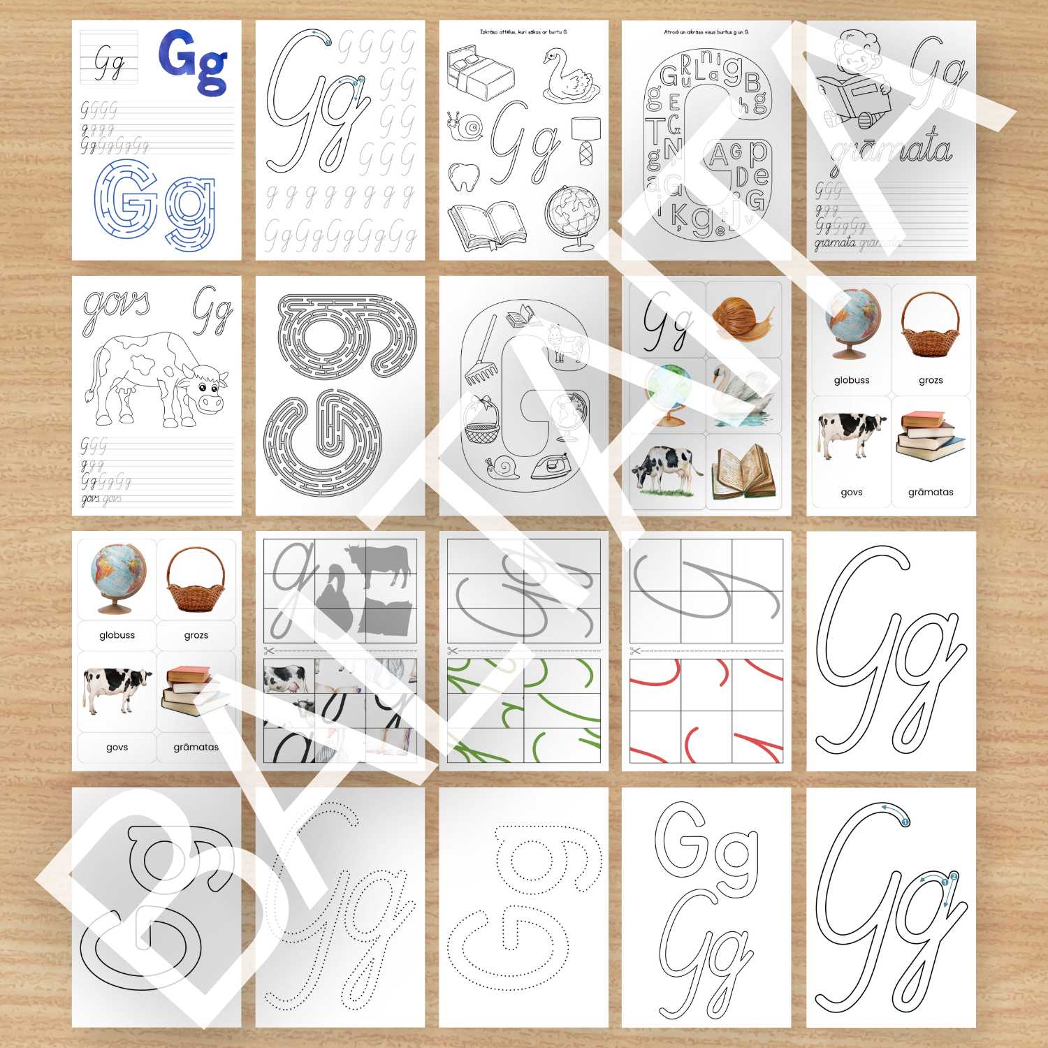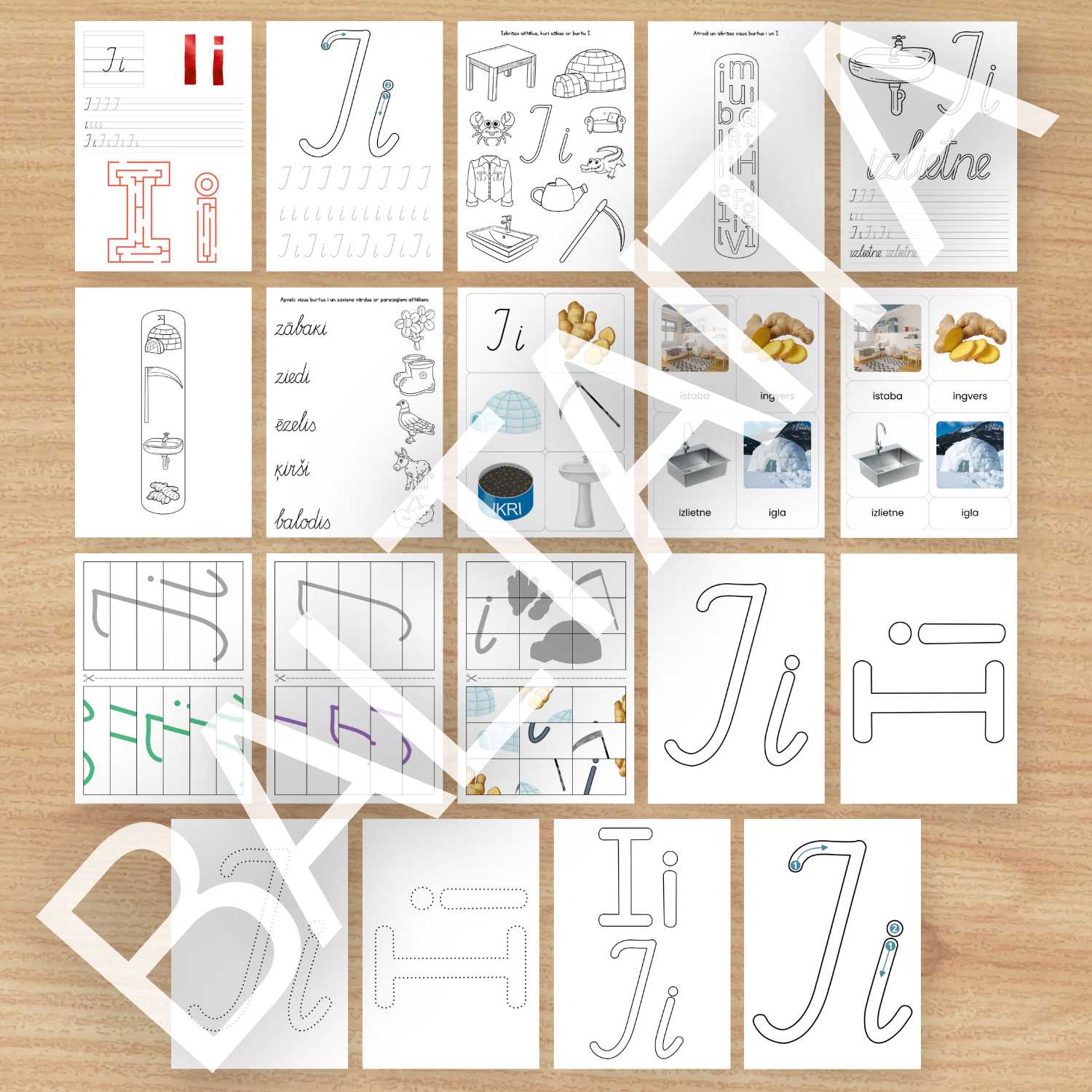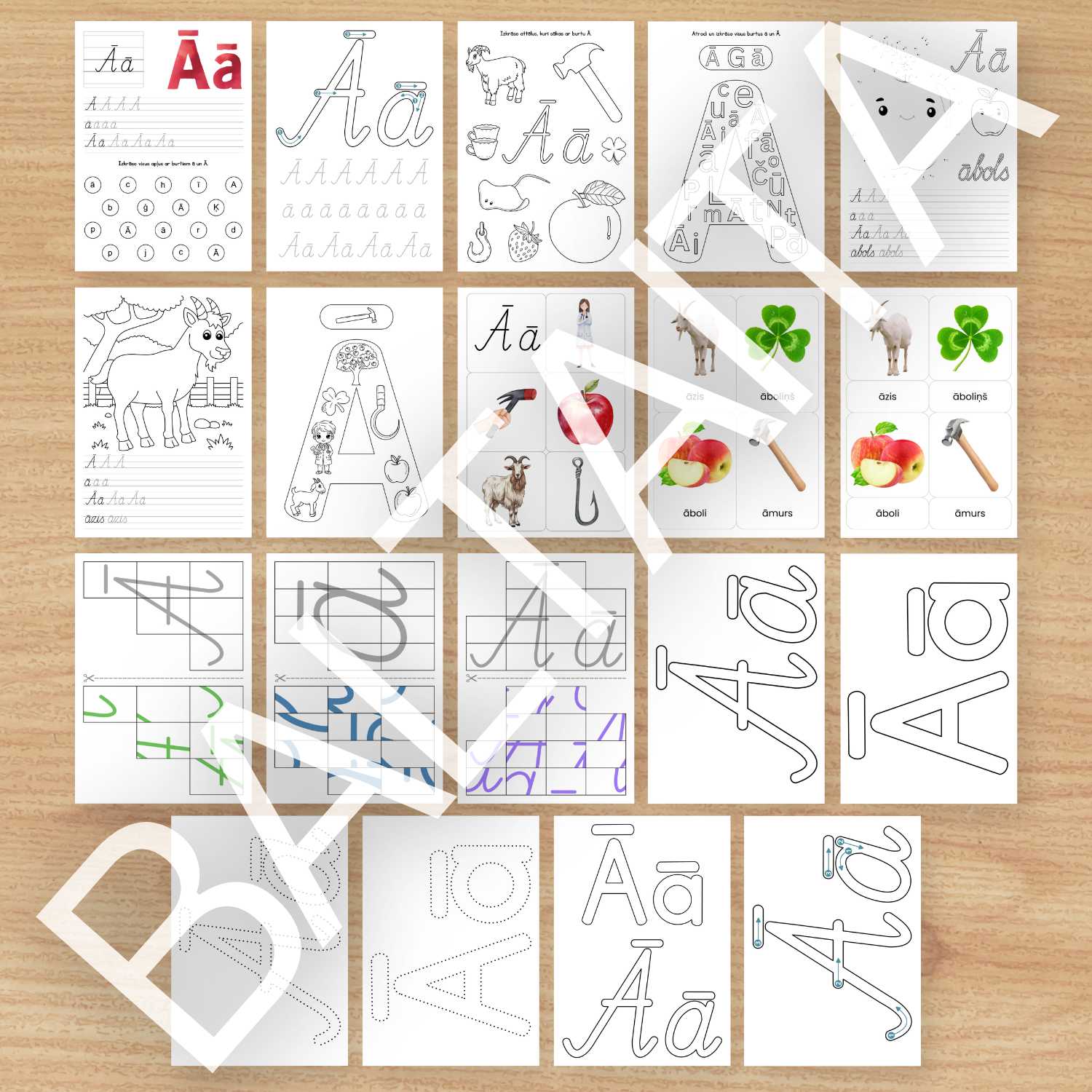 Versija "Visi alfabēta burti" sastāv no darba lapām katram alfabēta burtam - kopā 636 lpp., PDF formātā. Darba lapas iespējams lejuplādēt gan par katru burtu atsevišķi, gan visas kopā kā .zip failu.