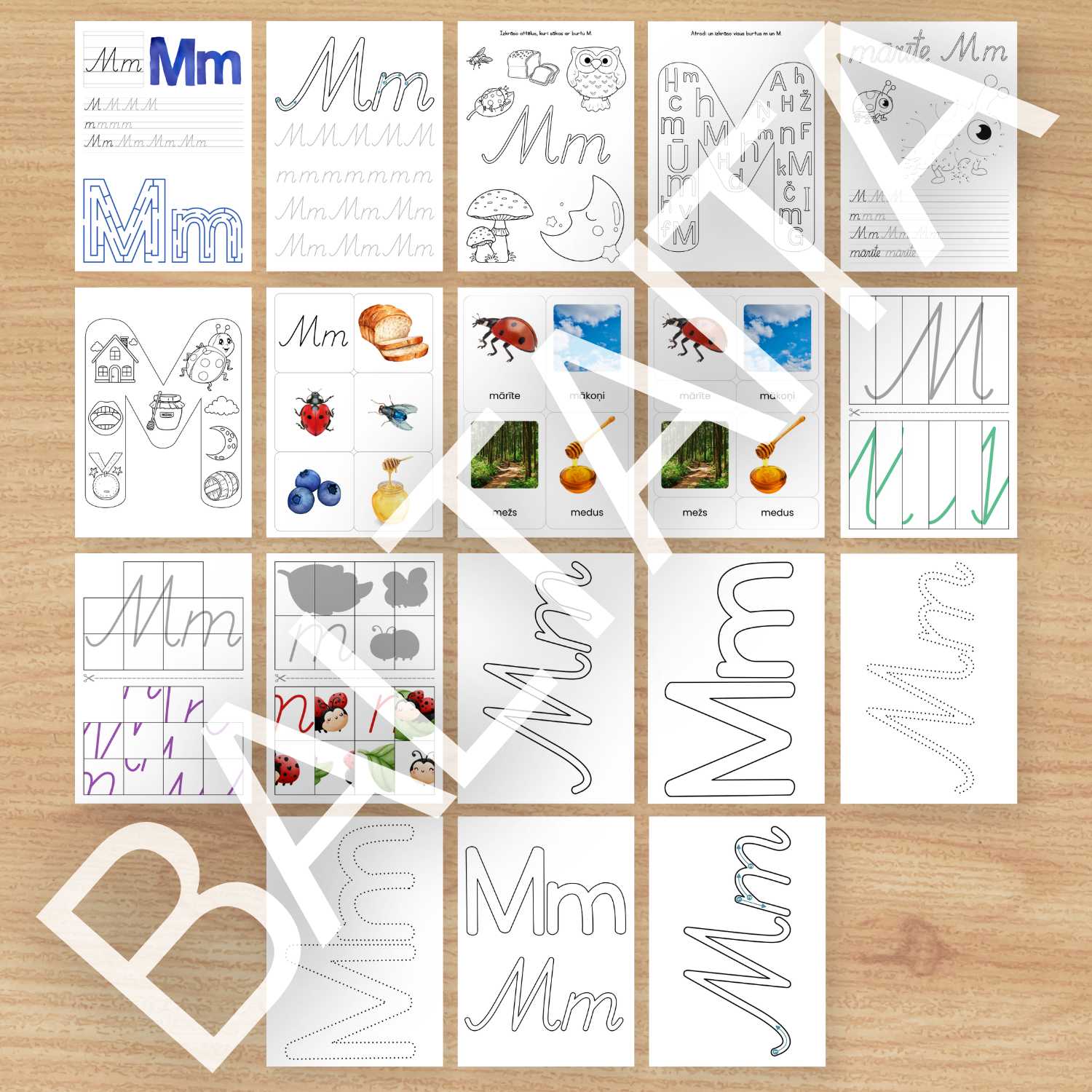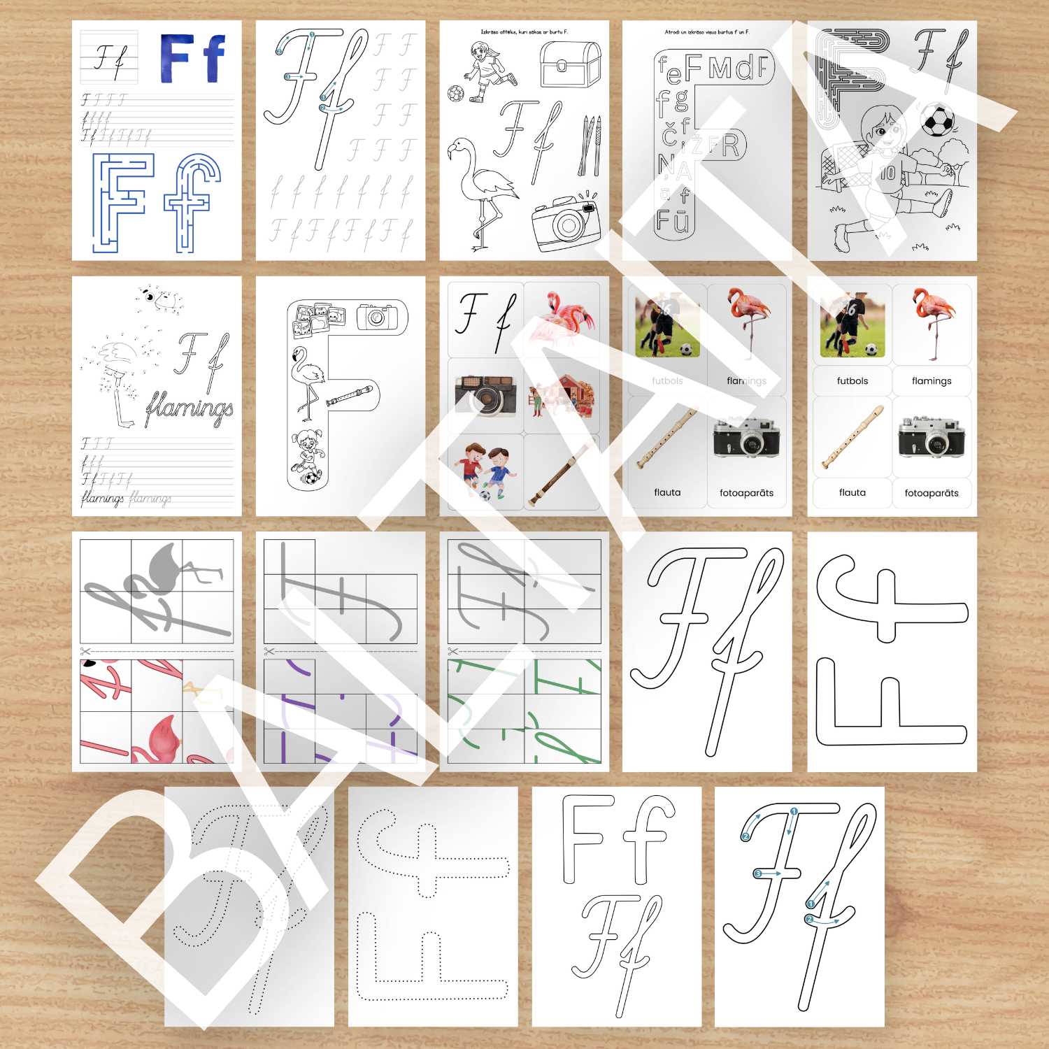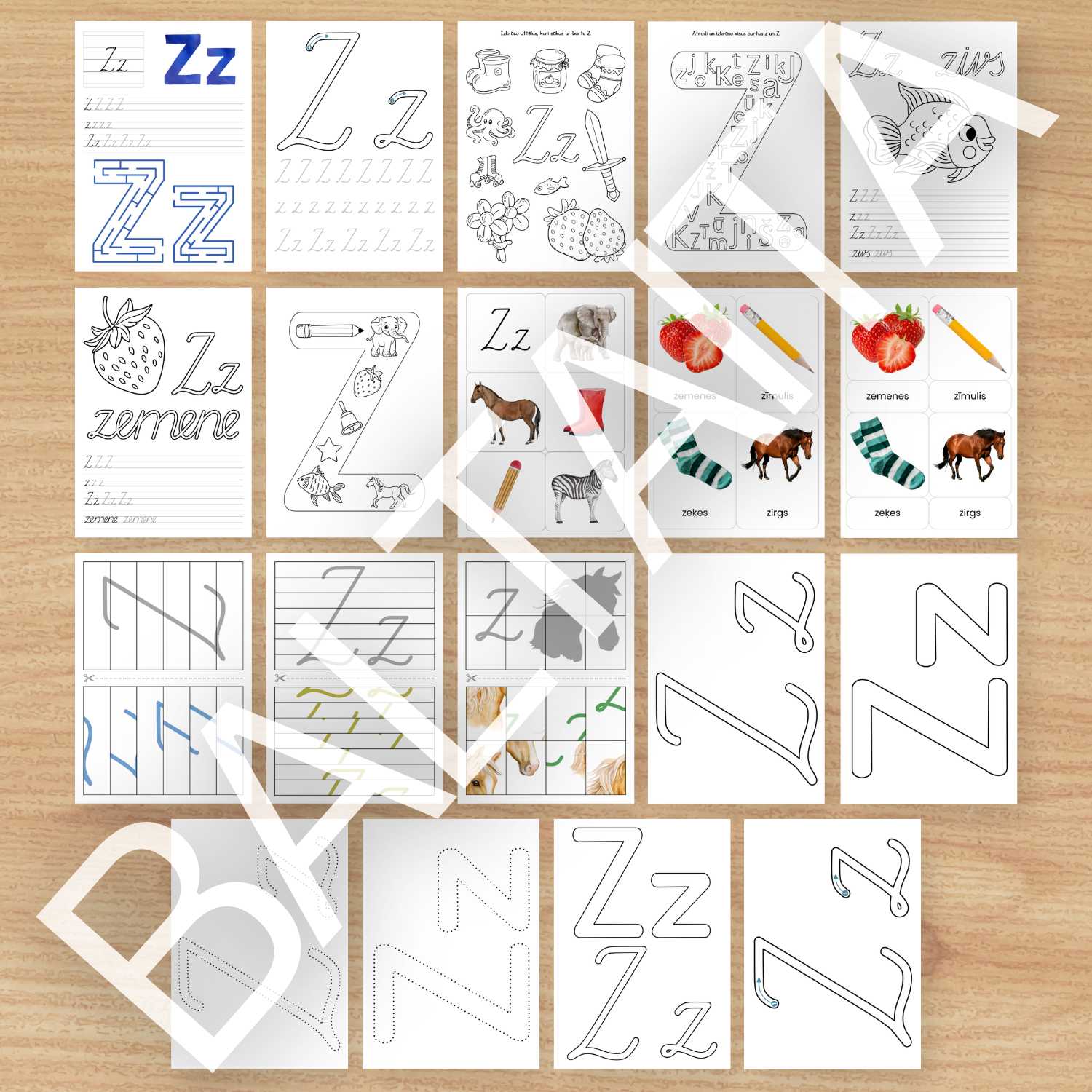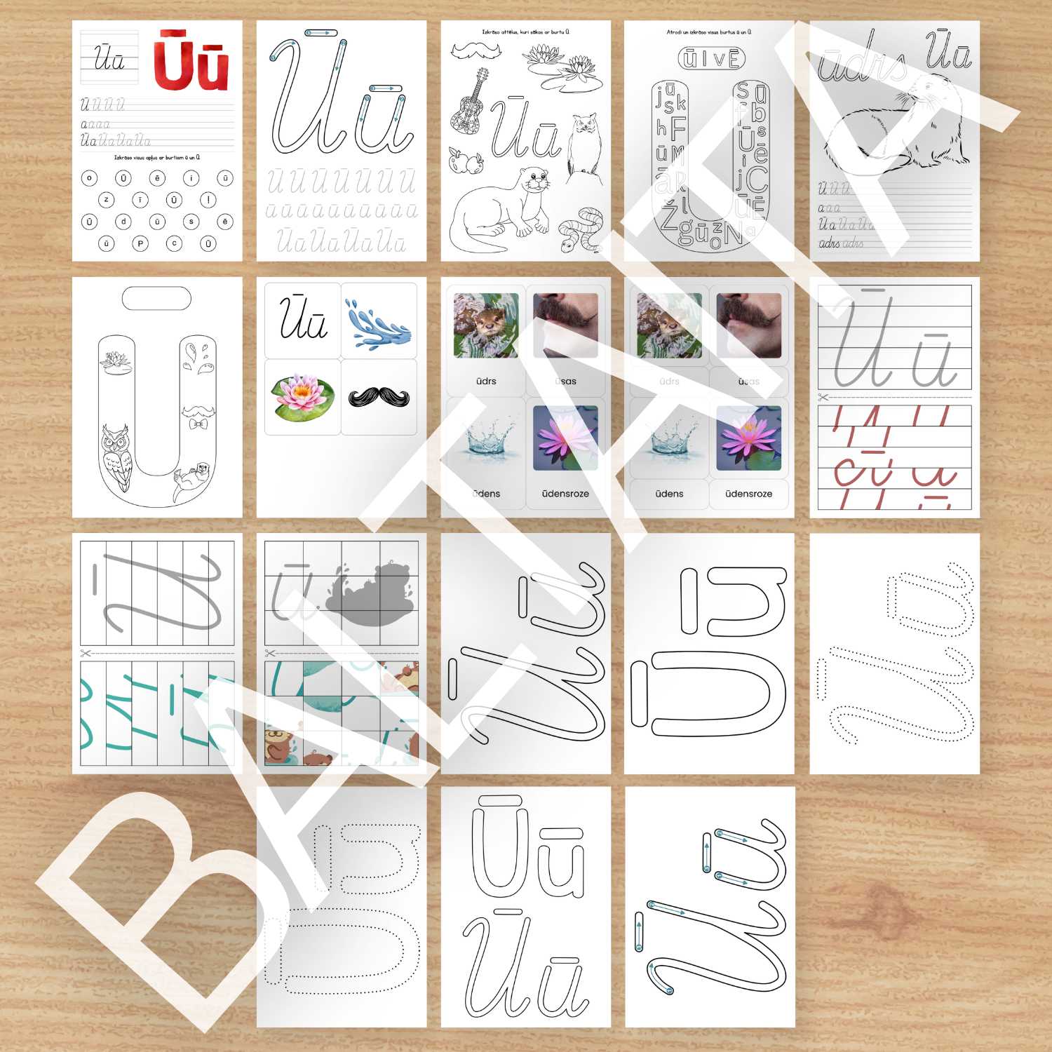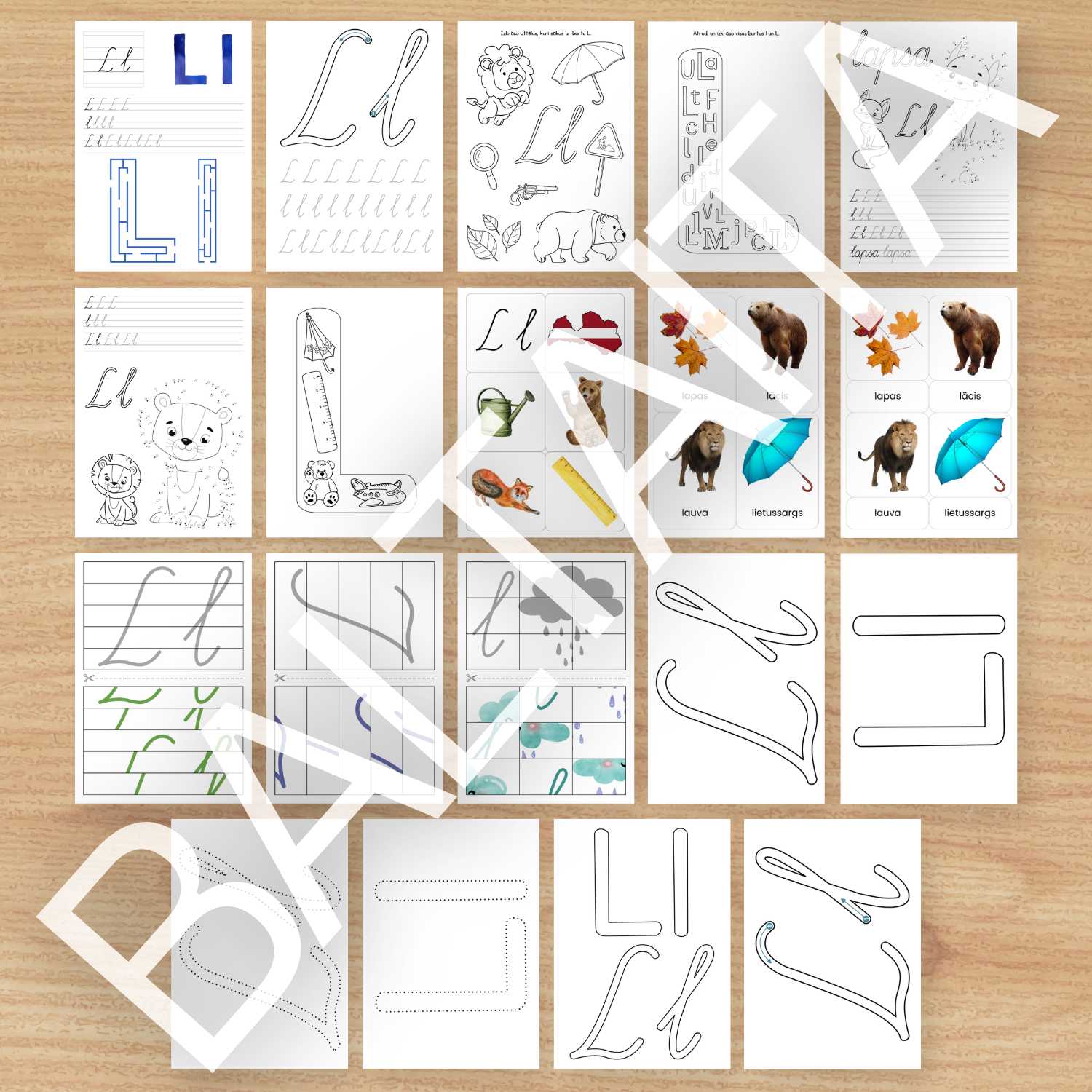 Versija "Visi alfabēta burti" sastāv no darba lapām katram alfabēta burtam - kopā 636 lpp., PDF formātā. Darba lapas iespējams lejuplādēt gan par katru burtu atsevišķi, gan visas kopā kā .zip failu.