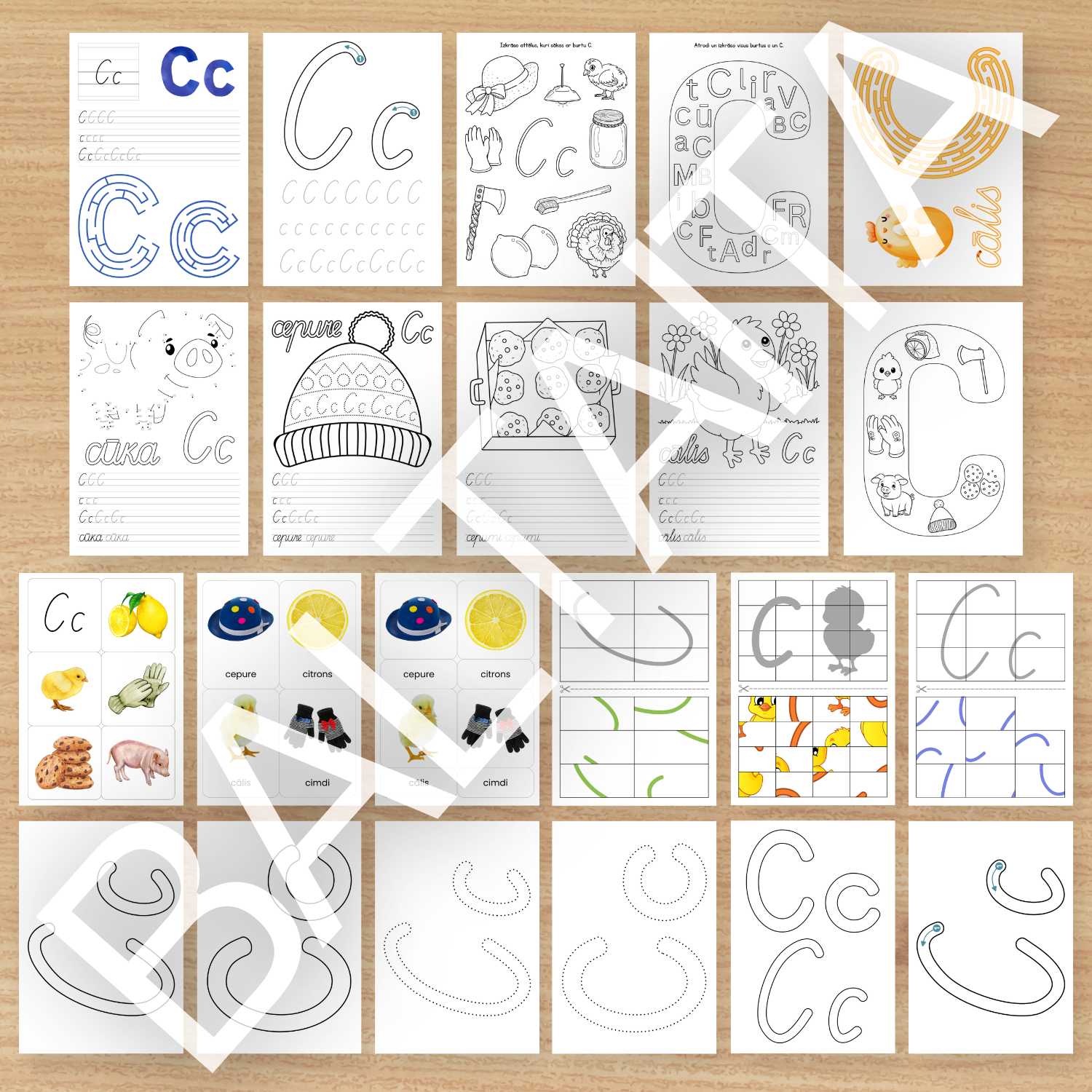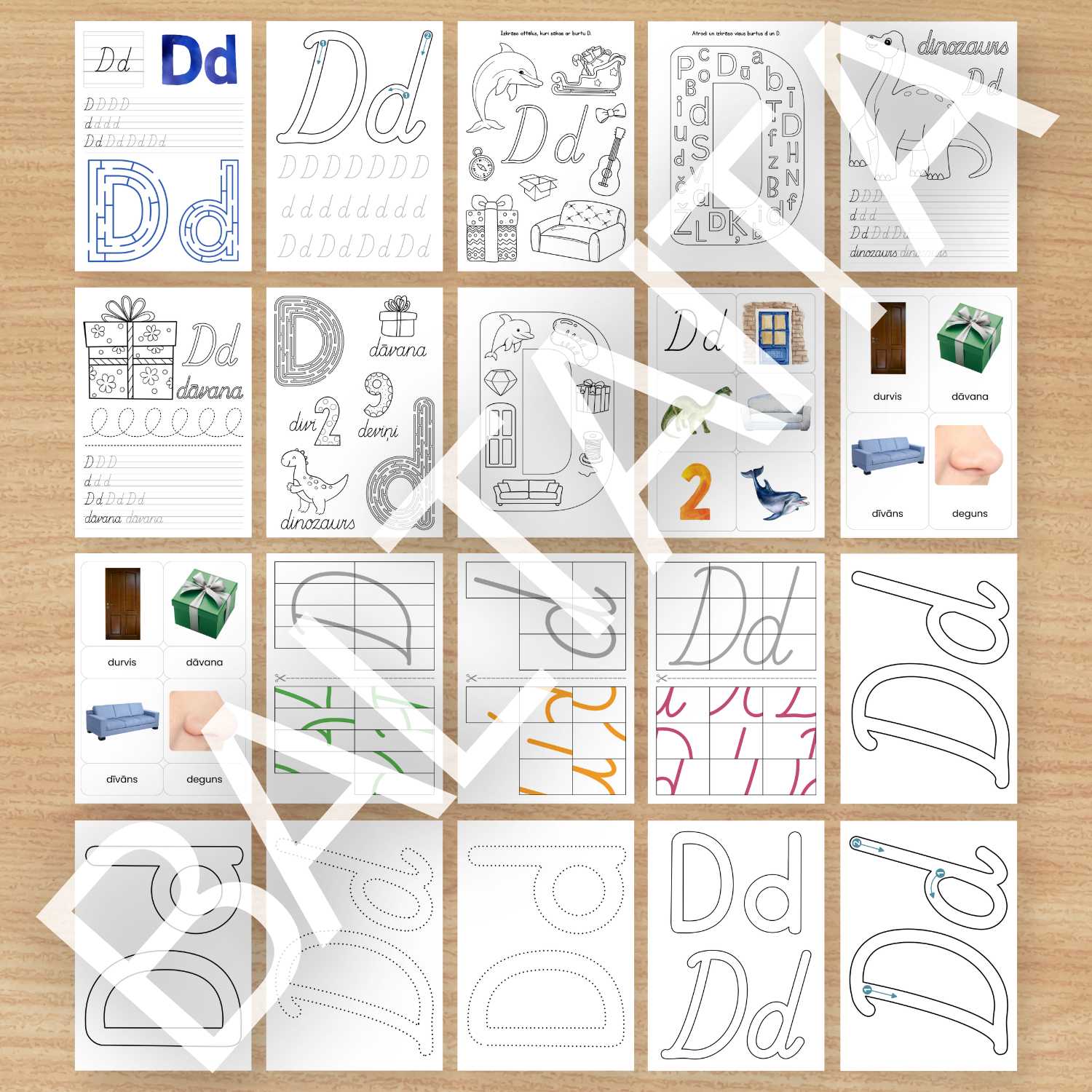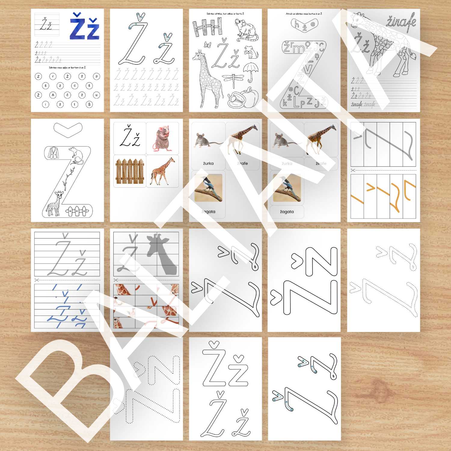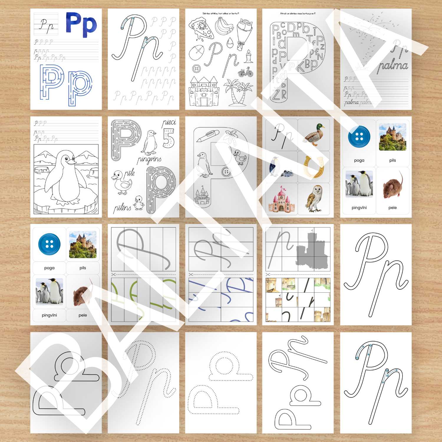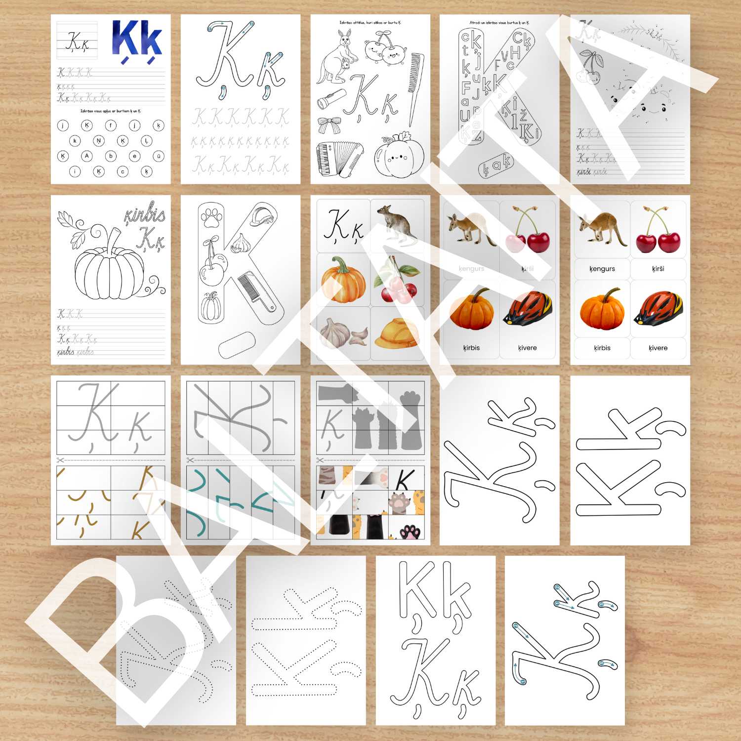 Versija "Visi alfabēta burti" sastāv no darba lapām katram alfabēta burtam - kopā 636 lpp., PDF formātā. Darba lapas iespējams lejuplādēt gan par katru burtu atsevišķi, gan visas kopā kā .zip failu.