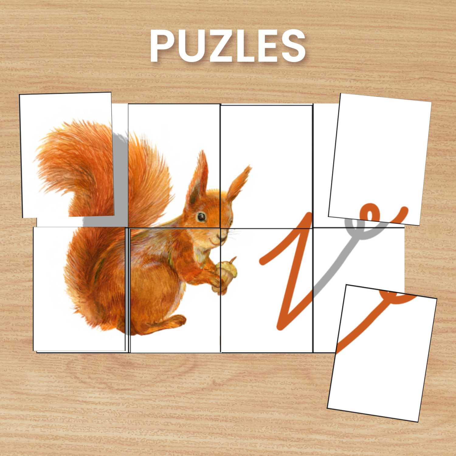Tāpat šajā mācību materiālā iekļautas rādāmās kartītes ar dažādiem attēliem, kuri sākas ar noteikto burtu. Papildus, iekļauti dažādi uzdevumi burtu puzles salikšanai, kā arī lapas ar lielajiem un mazajiem burtiem dažādos fontos burtu aplicēšanai, plastilīna bumbiņu lipināšanai vai citām nodarbēm.