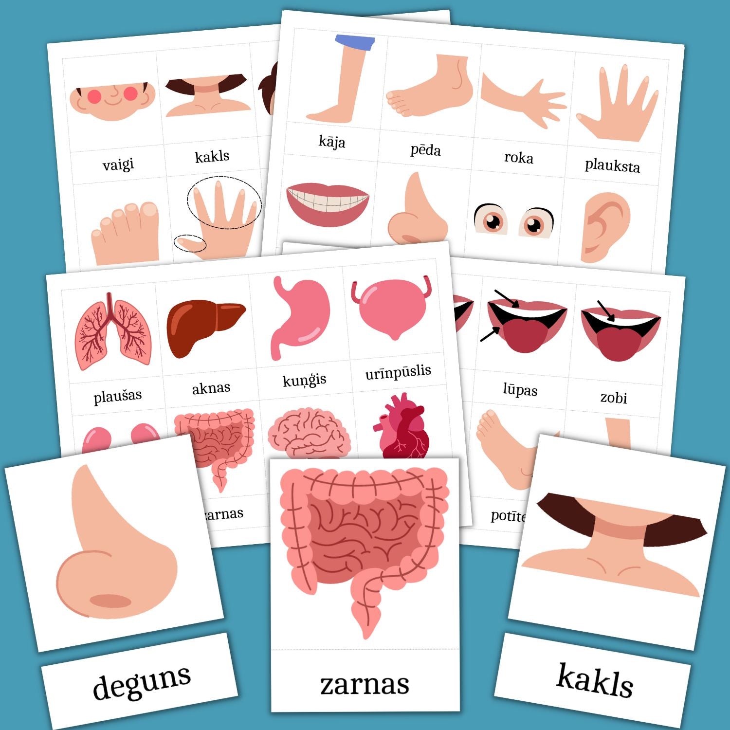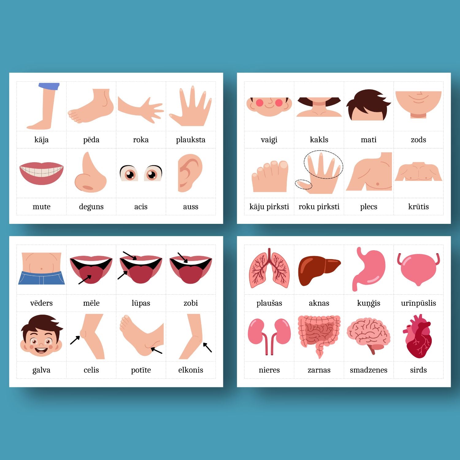 Kartītes: Ķermeņa daļas un iekšējie orgāni