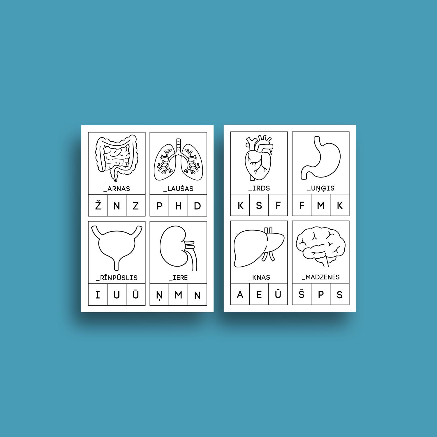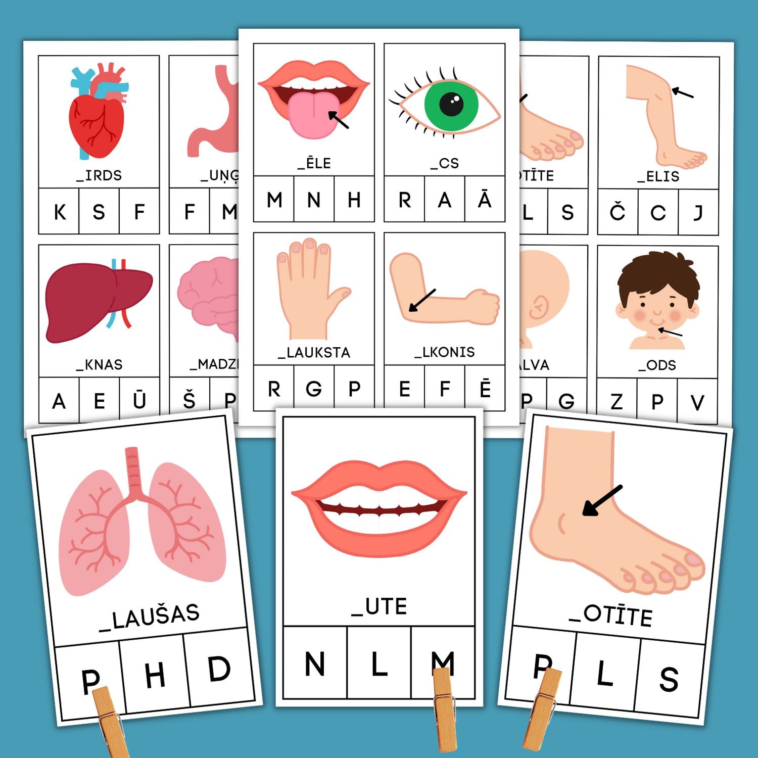 Knaģu kartītes: Ķermeņa daļas un iekšējie orgāni