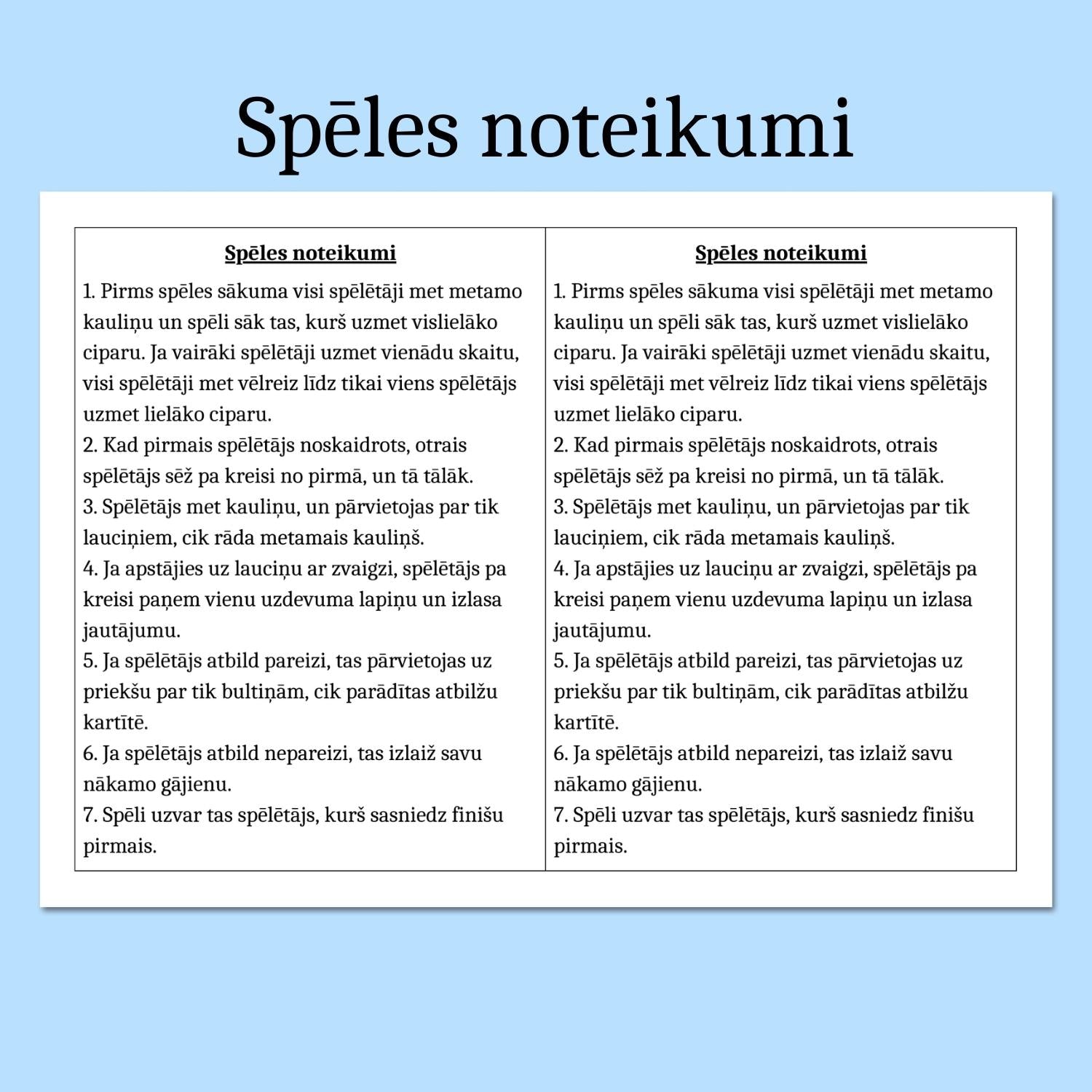 Spēli uzvar tas, kurš pirmais nokļūst līdz finišam.