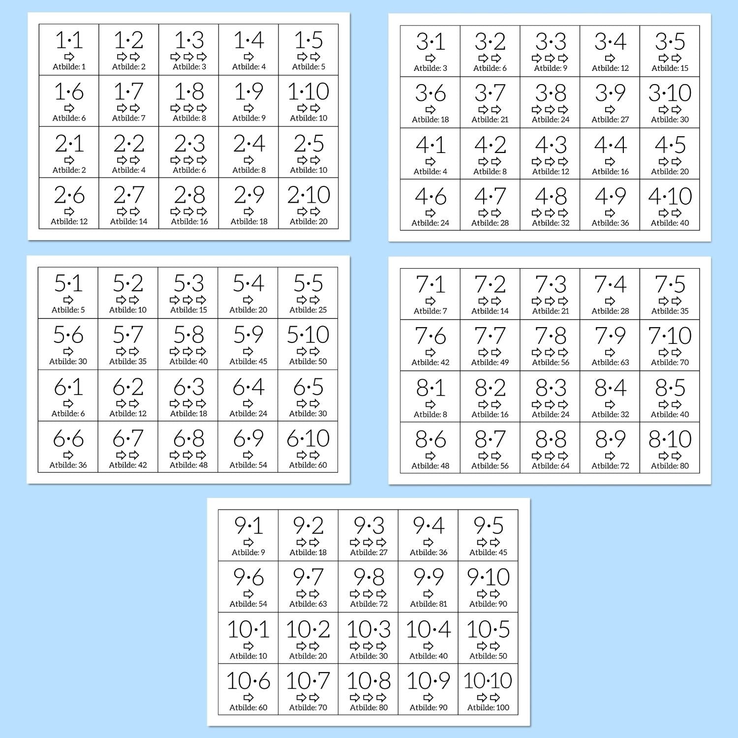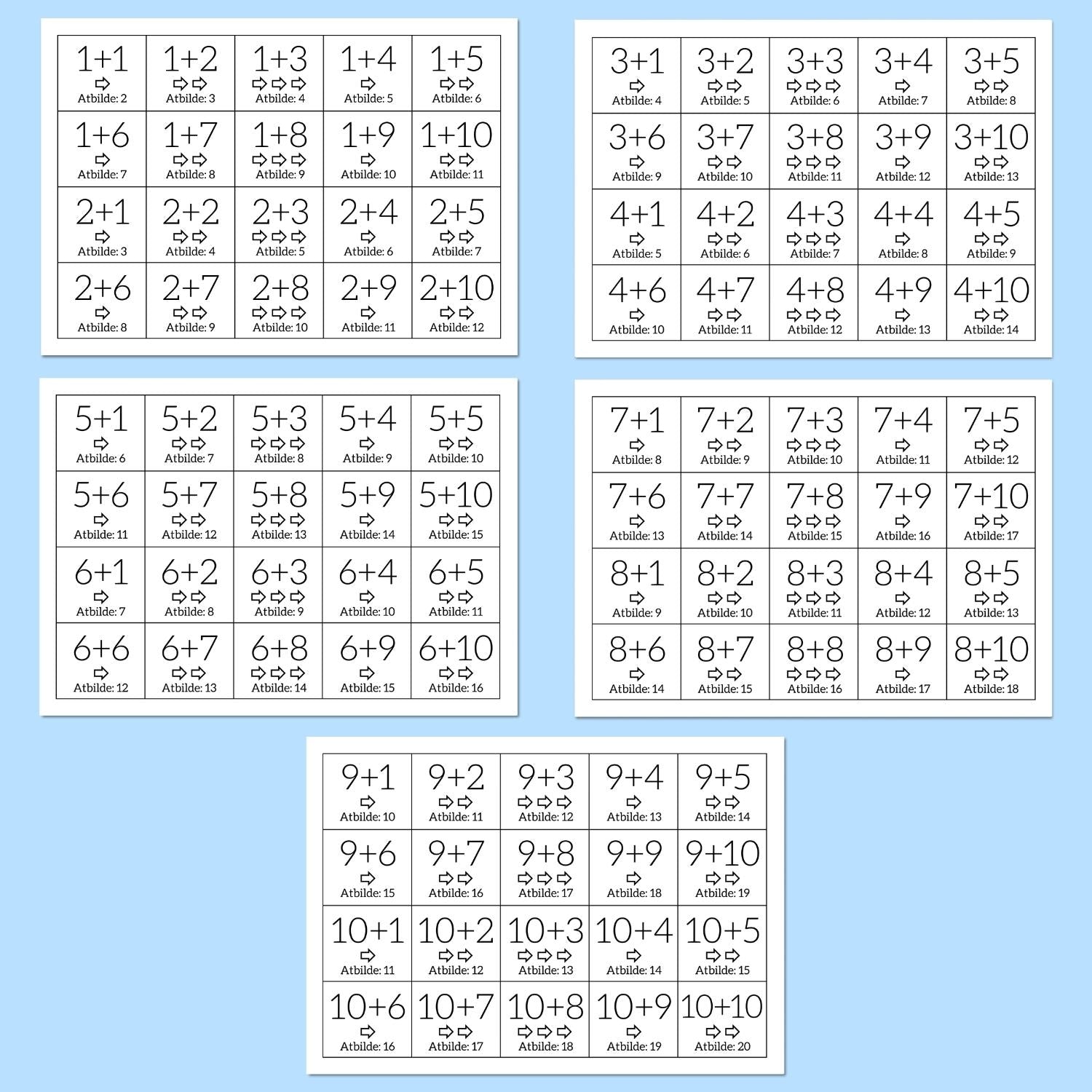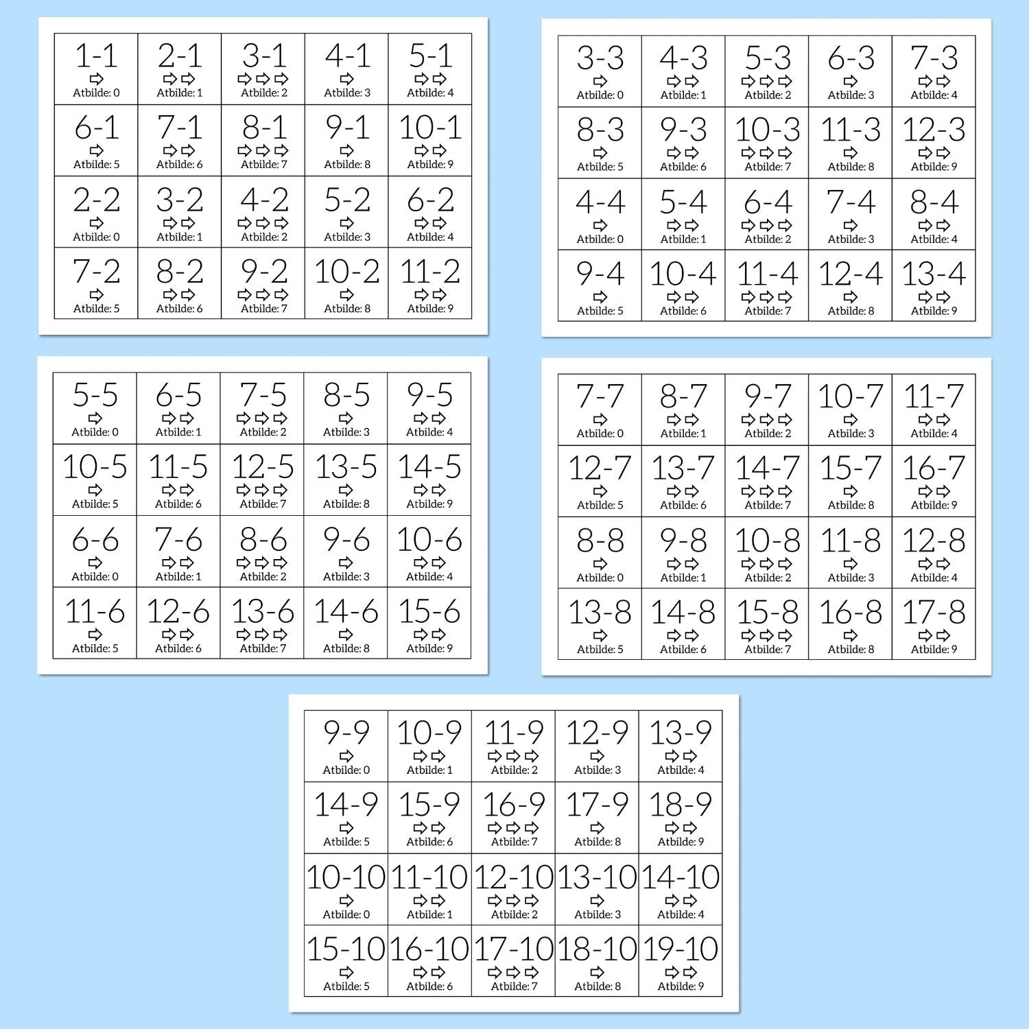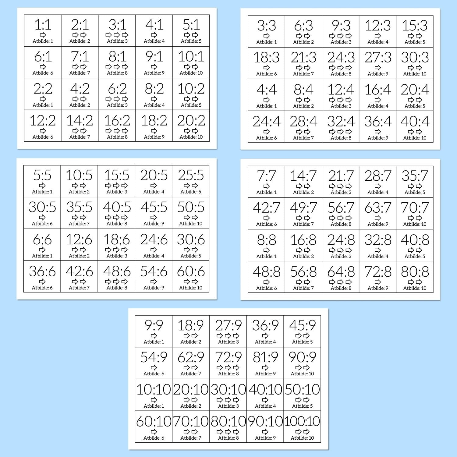 Kartītes sastāv no saskaitīšanas, atņemšanas, reizināšanas un dalīšanas uzdevumiem.