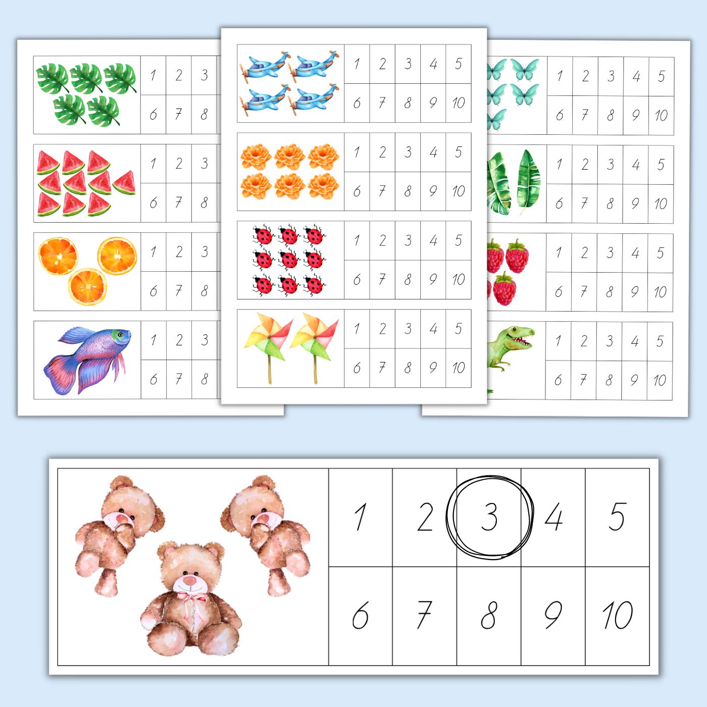 24 dažādi skaitīšanas un pareizās atbildes apvilkšanas vai izkrāsošanas uzdevumi pašiem mazākajiem.