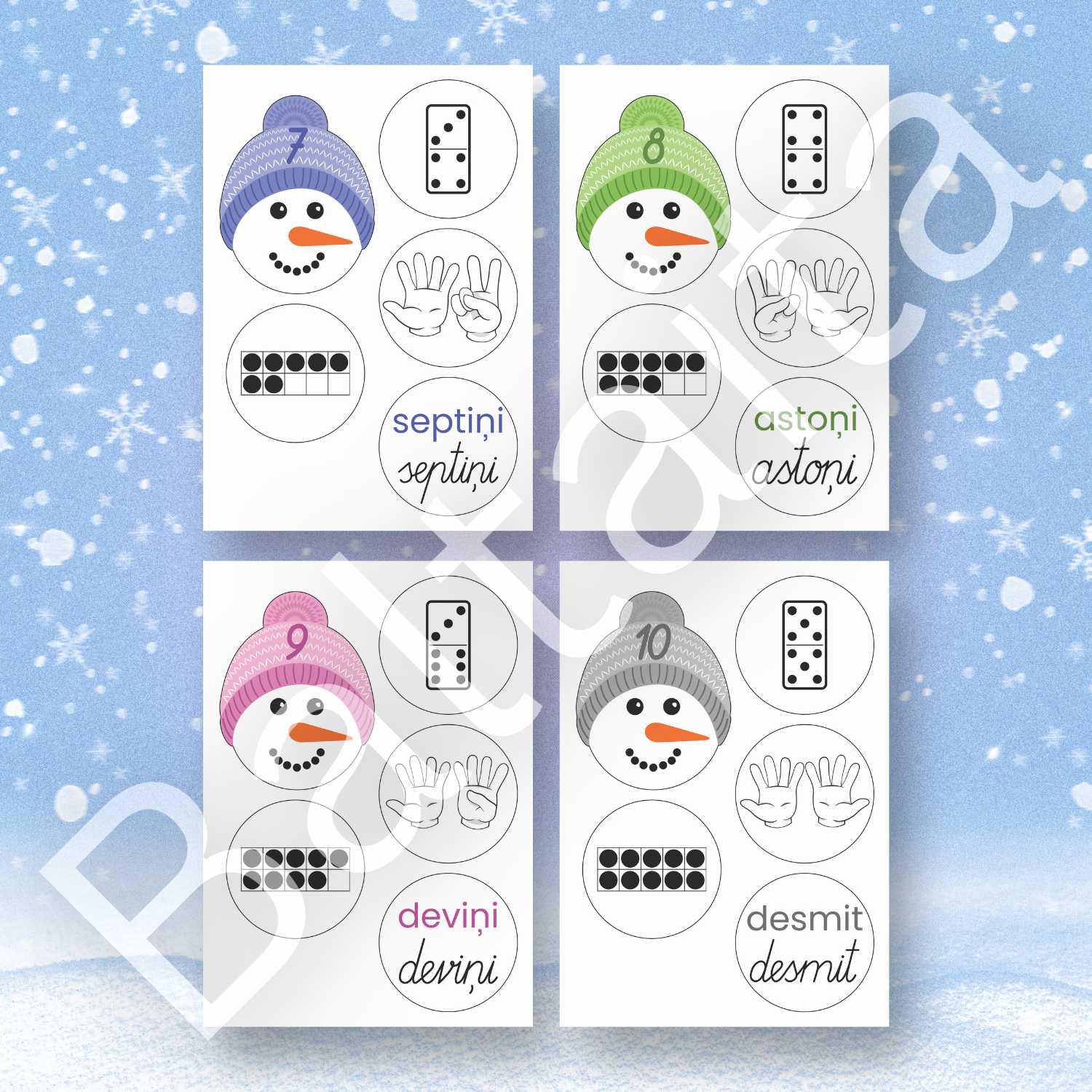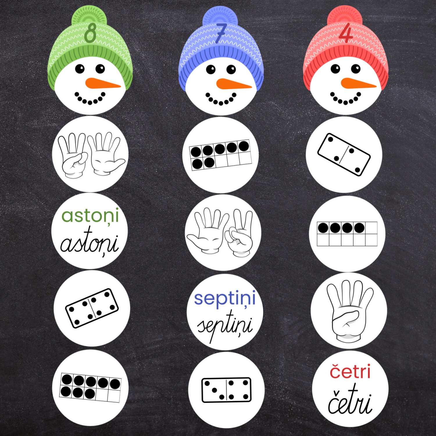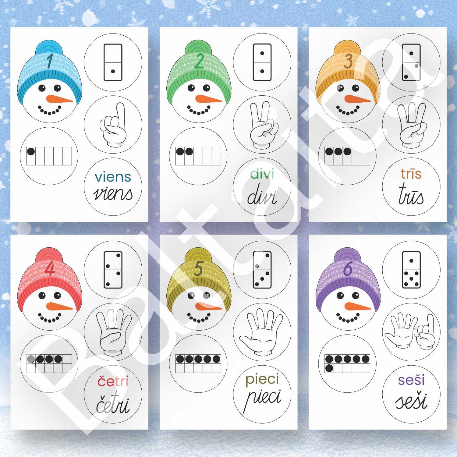 Katrs sniegavīrs sagatavojams izgriežot un darbojoties uzdevums ir salikt pareizos sniegavīra elementus tā, lai tie atbilst noteiktajam skaitlim.